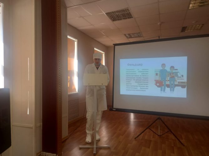 Конкурс проходил в три этапа. В первом студенты демонстрировали презентации, где рассказывали о будущей профессии и своём умении выполнять медицинские задачи, согласно специальности.
