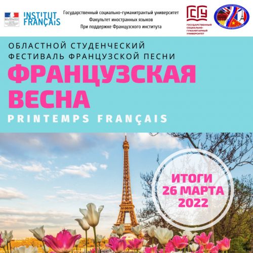 Отметим, фестиваль-конкурс французской песни «Французская весна» проводится ежегодно с 2011 года для школьников и студентов Подмосковья. Его организует факультет иностранных языков. Фестиваль дает возможность участникам и зрителям проникнуться очарованием французского языка и повысить интерес к его изучению.